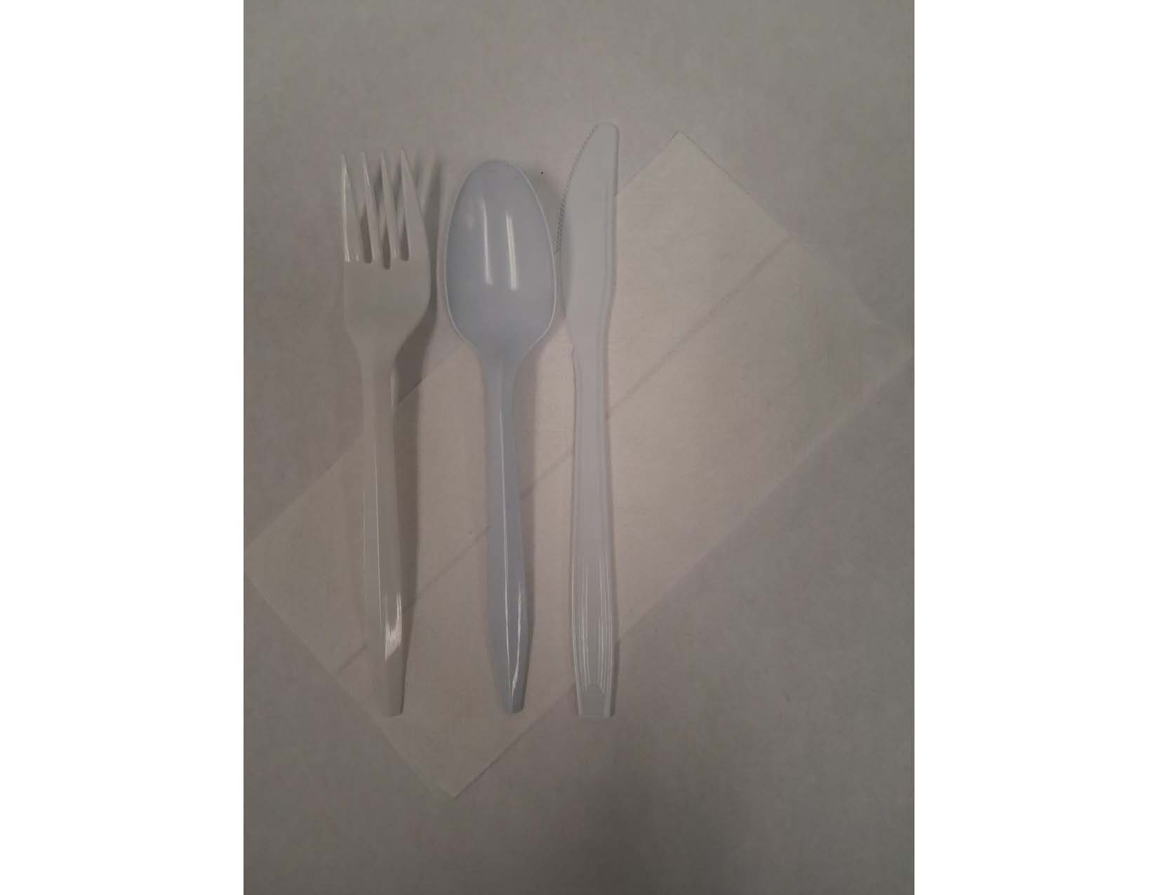 Food Service Kits - Plastic Flatware With Napkin - Knife, Fork and Spoon, 1 single-ply napkin. 334 per case