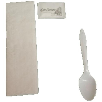 Food Service Kits - Liquid Color Code: Black With Teaspoon - 1 napkin, 1 sugar, 1 teaspoon. 250 per case.