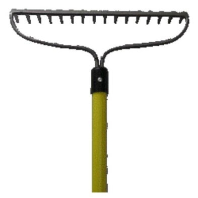 Bow Rake, 60" long fiberglass handle with cushion grip. Head style forged steel 16-tine. Head size 16.25" x 3.25".