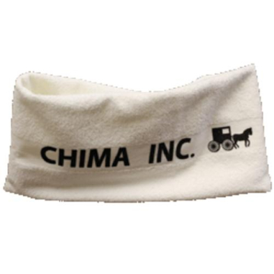 Bath Towel - 22" x 44", White with Agency Name printed in 1.5" blue lettering PLEASE NOTE: MINIMUM ORDER 300 towels. Agency name can be stenciled in black ink.