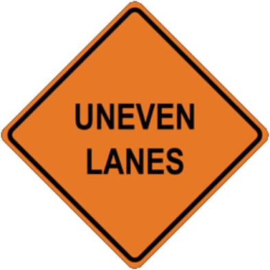 Sign,Roll-Up,36x36, W8-11, Uneven Lanes