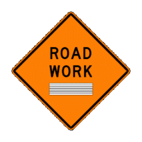 Road Work (please select one overlay patch) Flexible roll-up signs are made of Type VI microprism retro reflective SUPERBRITE sheeting heat sealed to a heavy-duty vinyl coated fabric. Legend and border are silk screened with black ink. Reinforced fiberglass cross brace ribs with flag holder provide a lightweight, rugged, easy to set up and take down temporary traffic sign. Excellent daytime visibility, plus the brightest nighttime retro reflectivity available. Meets FHWA requirements for NCHRP350 FHWA Acceptance WZ-18. Requires 3 special safety warning flags with detent button. Black and white legends do not require safety warning flags. Signs, stand, and flags sold separately. One changeable overlay patch included with each sign. W20-1