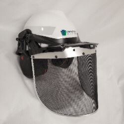 Chain Saw V-Gard Hard Hat: Available in White, Yellow-Green and Blue. Each hard hat includes 1" reflective stripe, FAST-TRAC suspension and the following kit: mesh face shield, V-Gard frame with debris control and 31 db ear muffs. Hi-Visibility meets ANSI Type 1-Class E. Available with or without PennDOT logo.