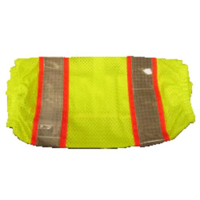 Safety Leggings PDR made of 3.4-oz. per sq. yd. Yellow green soft fluorescent polyester mesh with (2) 2" Reflexite silver reflective trim edged on each side with 1/2" soft polyester mesh fabric in red orange. Meets ANSI/ISEA 107-2015 standard Class E.